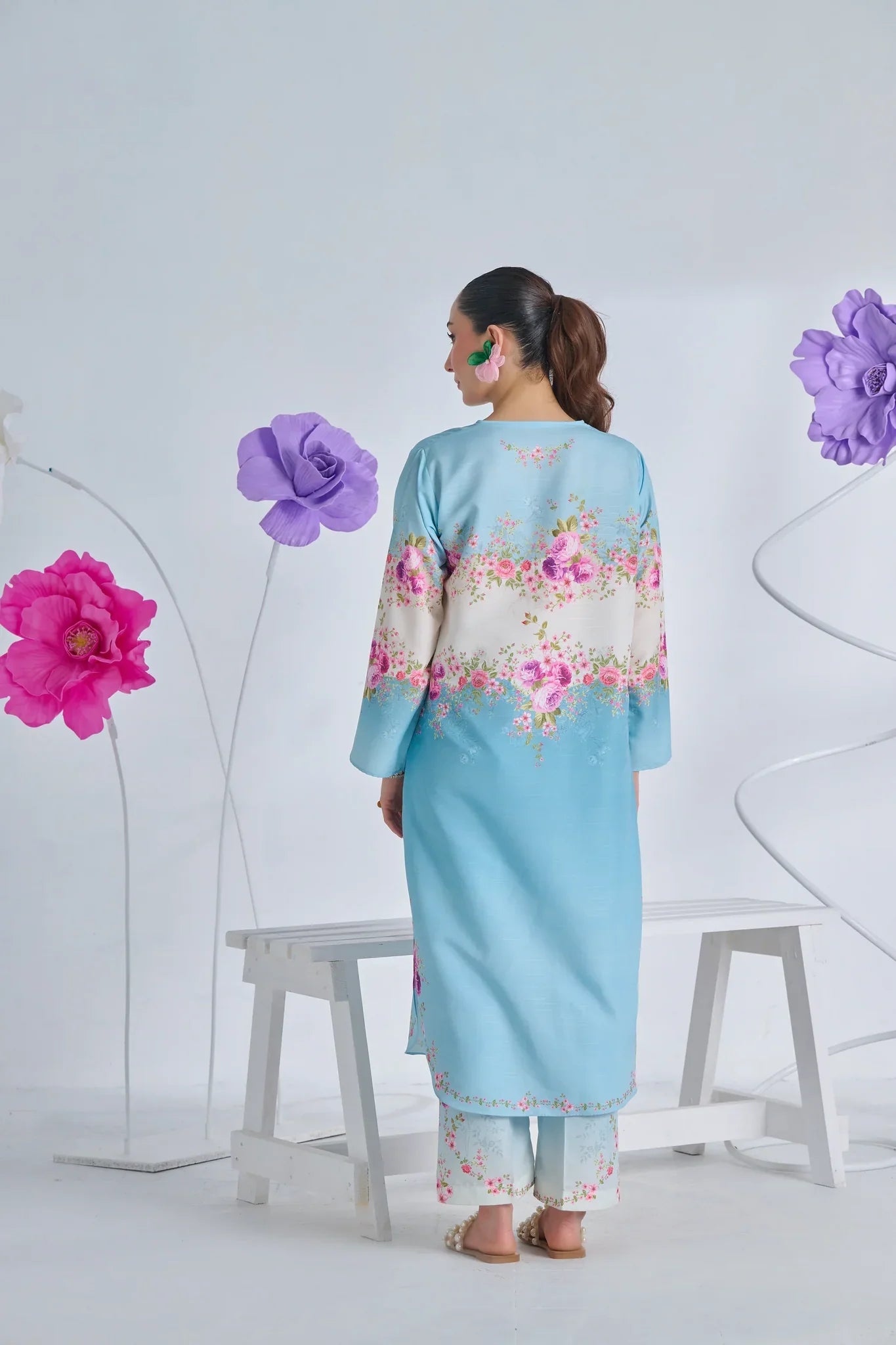 Presenting Sea Green Pearl Co-ord Set: Serene elegance with the turquoise ombré kurta set, adorned with delicate floral prints and intricate neckline detailing. Crafted from a lightweight, flowy fabric, this ensemble radiates effortless grace—perfect for summer soirées, festive mornings, or a chic day out.